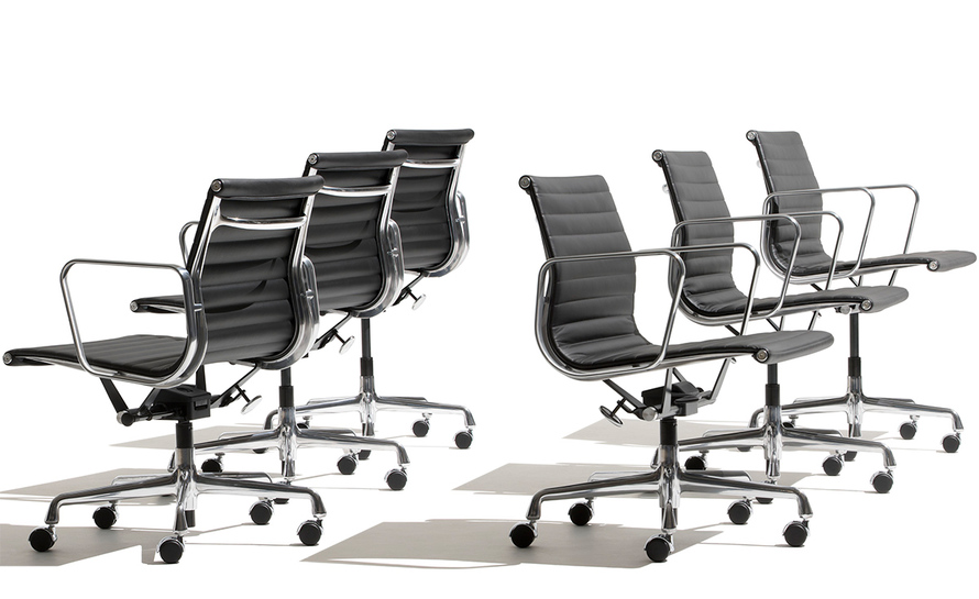 Charles与RayEames夫妇是20世纪最有影响力的设计师,卓越的设计涵盖了家具、建筑、影像与平面设计。他们从二次世界大战中美国海军的实验计画中学习经验并发展可谓是现今工业中使用模铸胶合版的先锋,这对设计界的超级夫妇档自1940年参与了由MOMA举办的有机家具设计大赛,自今已有近百件他们的作品被各大博物馆所永久典藏。 Eames® Soft Pad Side Chair(伊姆斯软包会议椅)是夫妻俩1958年设计的,是在全铝系列的基础上发展的另一系列Eames产品。舒适系列在全铝的椅架上增加了皮革制的柔软坐垫和靠背,高级铝合金制作,压模四星脚,可旋转。背垫和坐垫,采用西皮,具有透气性强,内部填充高密度定型绵,不易变形,不老化,依人体坐姿,符合人体工学,耐水及对人体无害等优势。椅子扶手选用优质电镀铝合金扶手,手感舒适,永久不生锈。转椅底盘为多功能底盘,可以保护使用者长时间坐用腿部健康,且作为高度可多定位调节。气压棒采用的气杆是正规厂家出产的外贸气杆,每一根气杆都有钢印,经过严格SGS检测的才可出厂,旋转、升降自如基本无声响,使用寿命长,可承受250kg,可升降数万次,将椅面调至与膝盖同高时,使用者坐下后双脚跟可垂直平放于地上,且大腿与地面平行,最符合人体工学理论,使用者长期久坐,也不想疲惫。办公椅脚为铝合金材质永久不生锈、承受能力强,安全更放心。椅子脚轮采用优质电镀片脚轮,耐用而美观,可以随意变换位置,贴心更方便,具有防震及防松脱,让椅子的安全性能更加可靠。
