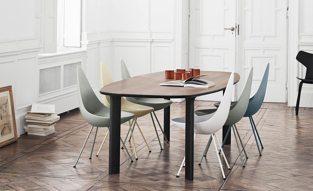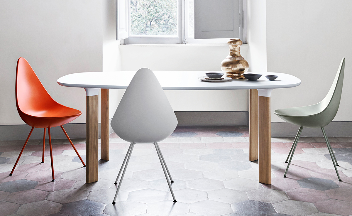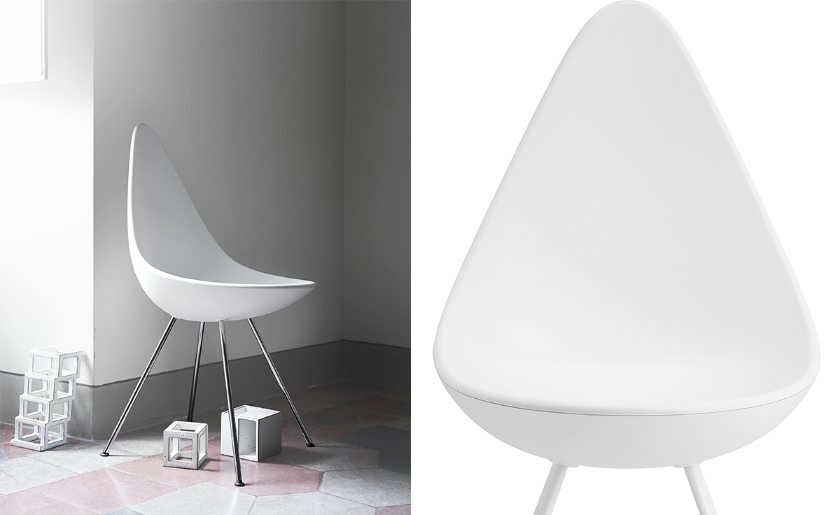 "“水滴椅”是由阿恩·雅各布森于1958年,在传奇的雷迪森在哥本哈根皇家酒店设计的,是他的杰作的一部分。“水滴椅”的设计原型为天鹅和鸡蛋,专门为酒店设计,数量非常有限。