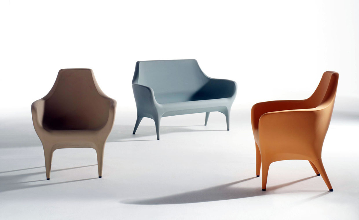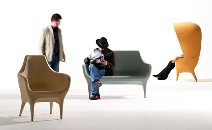 Showtime Poltronas 沙發系列是 Jaime Hayon 受邀與西班牙頂尖設計家具公司 BD Barcelona 合作推出的精品級藝術家具系列,靈感來自於米高梅歌舞劇場景,從單人沙發、雙人沙發 發展到最具趣味性的圓頂高背沙發椅,讓人坐進去就像是身處於古代歐洲戲院的包廂中,而外面的人只能看到一雙伸出的腿,充滿戲劇性的設計,不僅多了一份神秘感,,更令人不禁莞爾。