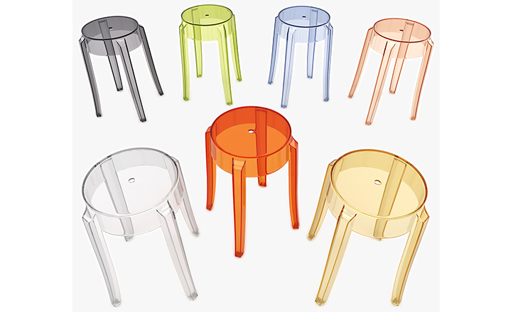 "Charles Ghost Stool(查尔斯鬼凳),由鼎鼎大名Philippe starck(菲利浦·史塔克)设计;进口高透明度工程塑料PC一体成型,简洁新潮,高净度透明材质很好的
