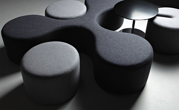 Molecule Pouf(分子墩)为意大利知名设计师 Stefano Bigi 所设计的家具作品系列,此系列包括两款形状产品三叶形结构以及圆柱体结构,可搭配其他装饰的元素和小会议圆桌,您可根据喜好进行组合搭配。制作采用防霉实木内框架或玻璃钢内胆、不易变形、高密度海绵、进口布艺或皮革(颜色多选),需要提醒的是,其布艺或皮革外套是不可拆卸的。