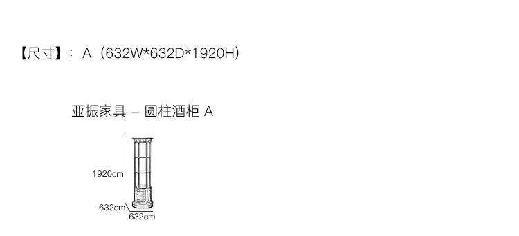 亚振家具 - 圆柱酒柜 产品尺寸/示意图