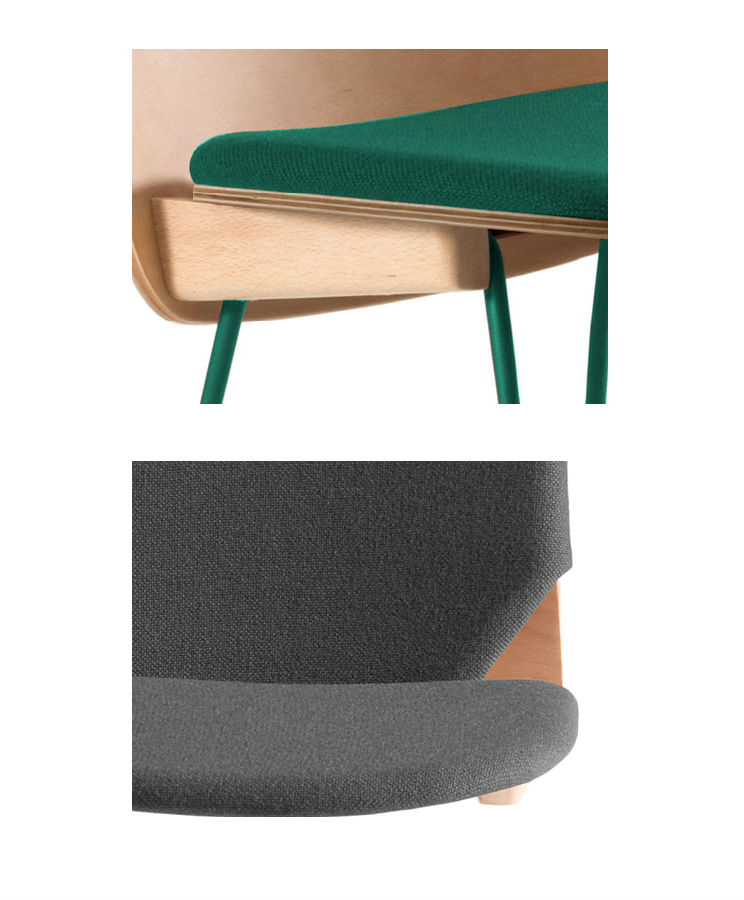 楔块有三种类型的腿,以适应不同的空间:四脚架的腿、四根杆腿和四根线腿。为了最大限度的定制和最大的舒适性,织物覆盖的衬垫可以被添加到座椅靠背和座椅,也可以用各种颜色。