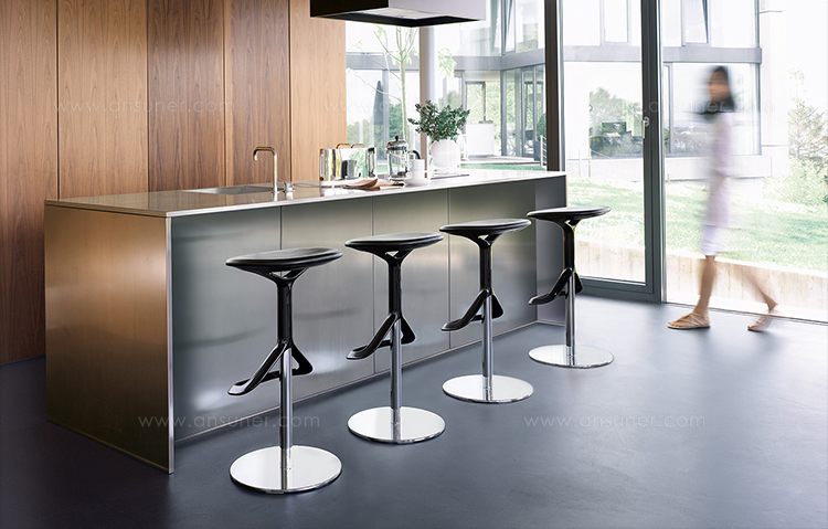 Lox是最好的吧椅,坚固的底座板是座椅和脚凳的流动形式。这个旋转的小凳子非常舒适,可以通过座位下面的隐藏按钮来调整到你所需要的高度,有种享乐的迹象。白色、黑色或者灰色的坐垫与镀铬的钢架相辅相成,形成一个动态的轮廓。
