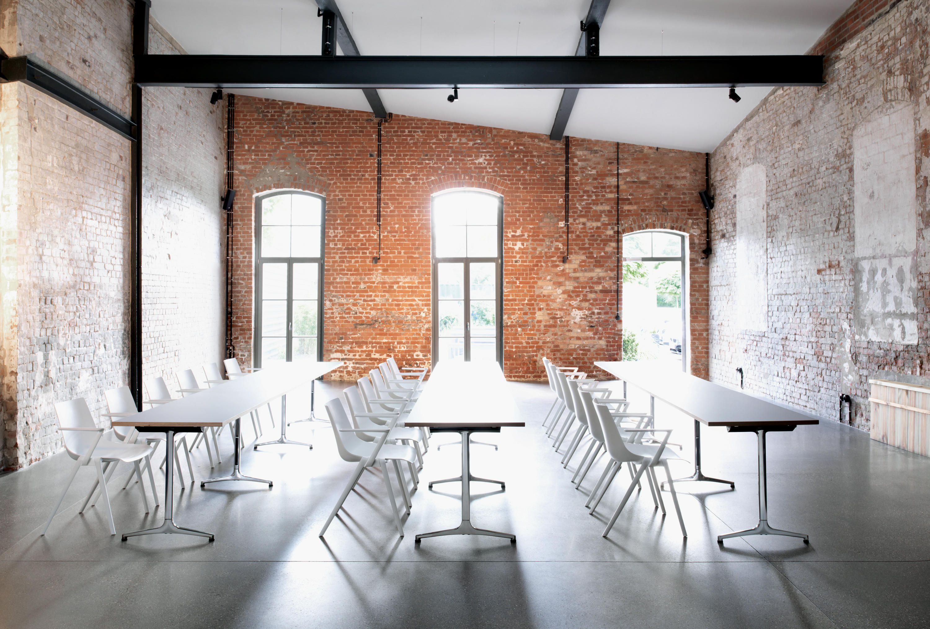 折叠桌的设计是为了给储存空间提供灵活的解决方案。在处理储存方面上,其设计的品种和质量对设备管理成本的影响受到了用户的赞赏。这就是mAx迷人的地方。设计精巧的折叠桌可以被紧凑的堆放,而且只需要一只手就能进行折叠。时尚的T型脚的材料和工艺保证了桌子的坚固耐用。