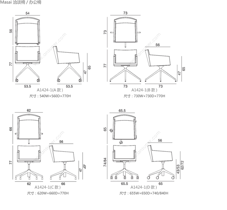 Masai 洽谈椅/办公椅 系列尺寸/示意图