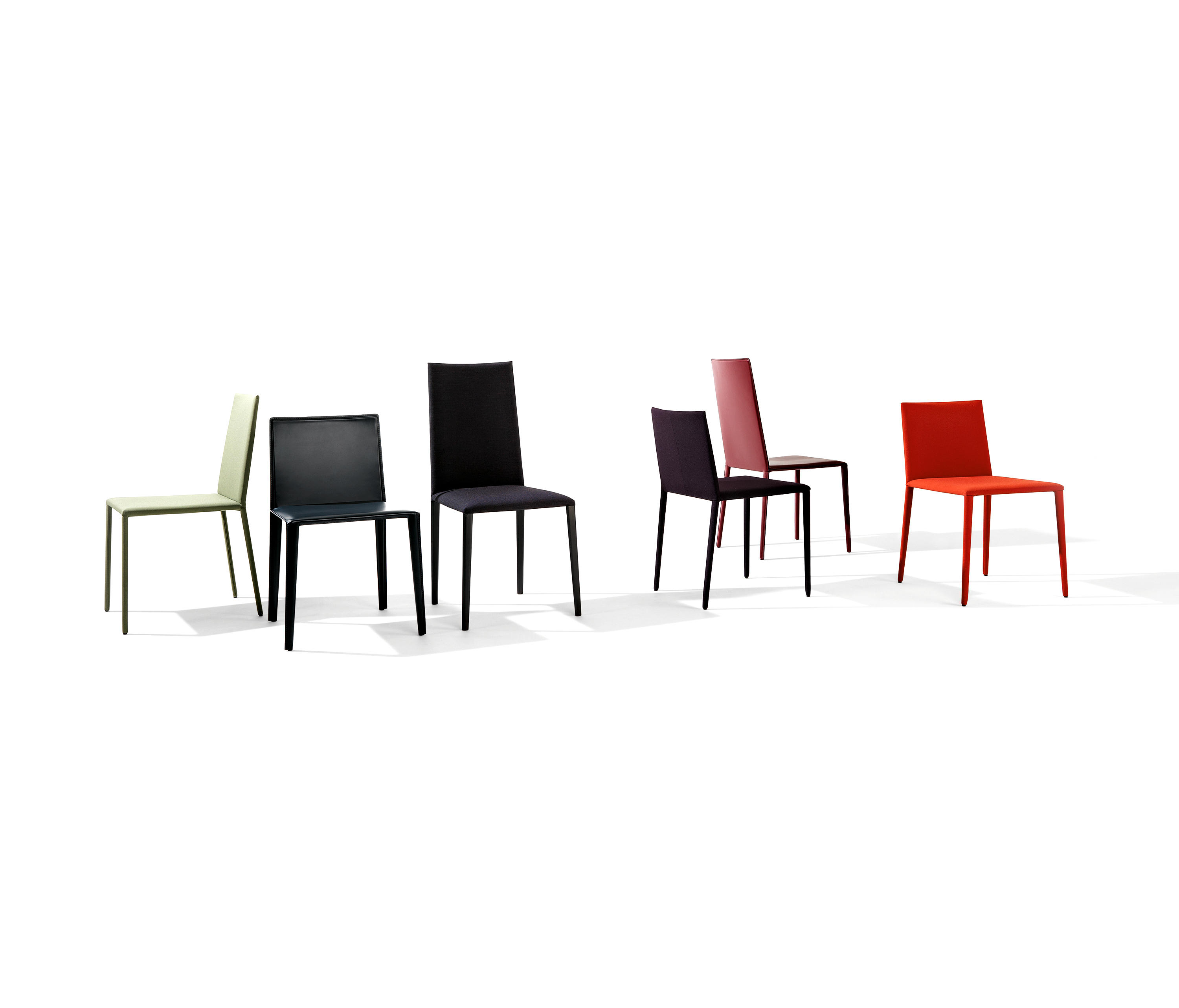 Norma有椅背版本,有三个后背高度,凳子有硬皮,织物或皮革内饰盖。涂漆,镀铬和贴面金属支脚延长了软垫椅子和凳子版本的耐用性,以供合同使用。还提供特殊的可堆叠版本,包括室内装潢和中高靠背。