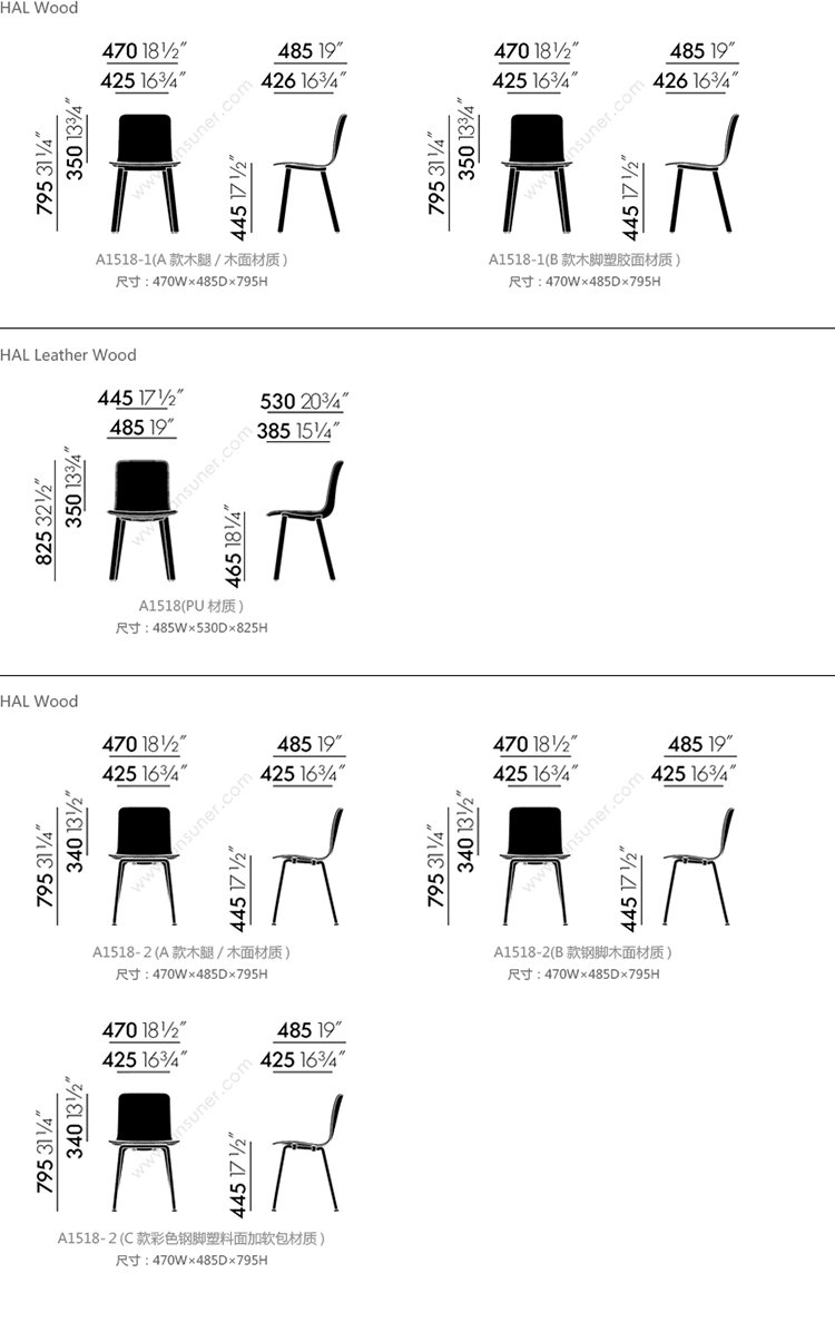 HAL Wood 系列尺寸/示意图