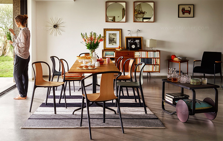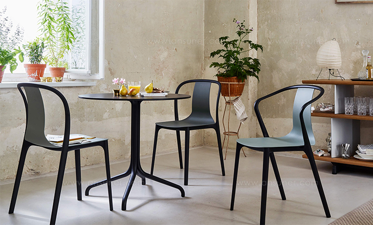 Belleville扶手椅是一种混合座椅,其座椅外壳有塑料,木质或皮革或织物覆盖。 每个版本都赋予优雅椅子独特的个性。 特有的前弯曲扶手提供轻松舒适,带塑料座椅外壳的型号也适合户外使用。