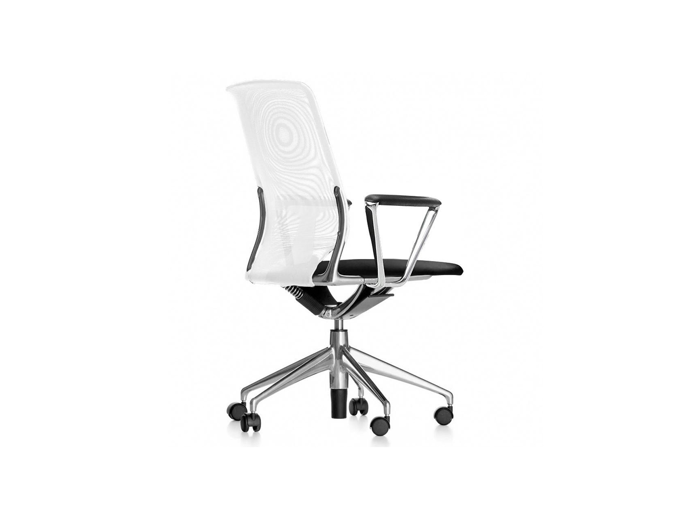 Meda Chair代表舒适,技术和美学的最佳组合。 其同步运动及其倾斜和可锁定靠背与座椅衬垫和优雅的装饰元素相结合,为用户提供卓越的舒适感。 座椅的装饰有皮革或织物可供选择,而靠背则可选择皮革或网眼织物。