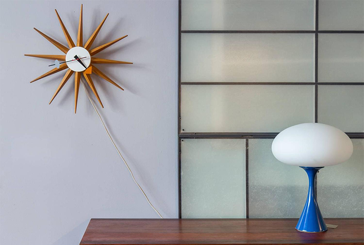 信仰进步和日益增长的经济繁荣是1950年左右美国生活方式的核心方面。一切似乎都有可能,人们努力做到“现代”。 为了将现代设计融入美国家庭,乔治·尼尔森构思了各种日常用品:灯具,钟表和其他家居饰品。 直到20世纪70年代,尼尔森办公室为家庭创造了许多不同的物品,包括泡泡灯和球钟,它们成为了本世纪中期现代设计的象征。