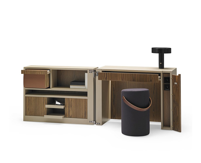 家庭办公,小的工作空间,并保持我们的文件和贵重物品内置电气化和LED照明终结:。亚光漆和木的结合