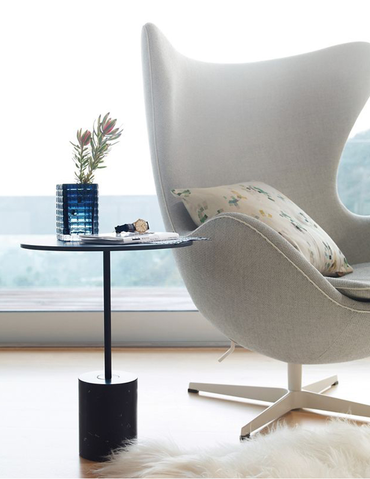 JEY.稳定且可移动。它可以作为一个顶部或便携式的桌子。它有两种不同的高度(45和50厘米)和四种不同的顶部,两种材料和两种颜色。它是一种小型的桌子雕塑,有大理石或水泥底座,管状柱以各种几何图形发展成一个形状的顶部,以一个手柄结束。手柄形状的弯管可以方便地移动桌子,特别是在高频区域(如办公室、酒店、酒吧、餐馆等),但也适用于当代居住环境。它可以与扶手椅、沙发、另一张桌子或另一张Jey相匹配。
