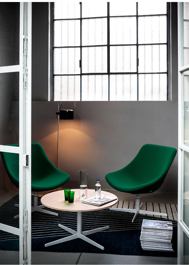 AUKI系列是基于优雅、简单、光滑的线条设计的,设计得非常舒适。有多种版本,可以定制从腿到室内装潢,从而创造适合所有环境的家具。一个典型的x形底座。具有优雅的严格线条,AUKI的小桌子可以安装一个圆形或方形的顶部。在家里、工作环境或酒吧中,是理想的。它有一个精致的设计,供非正式使用。咖啡桌与金属腿涂上粉末或垫子镀铬。顶部有几个不同的尺寸。