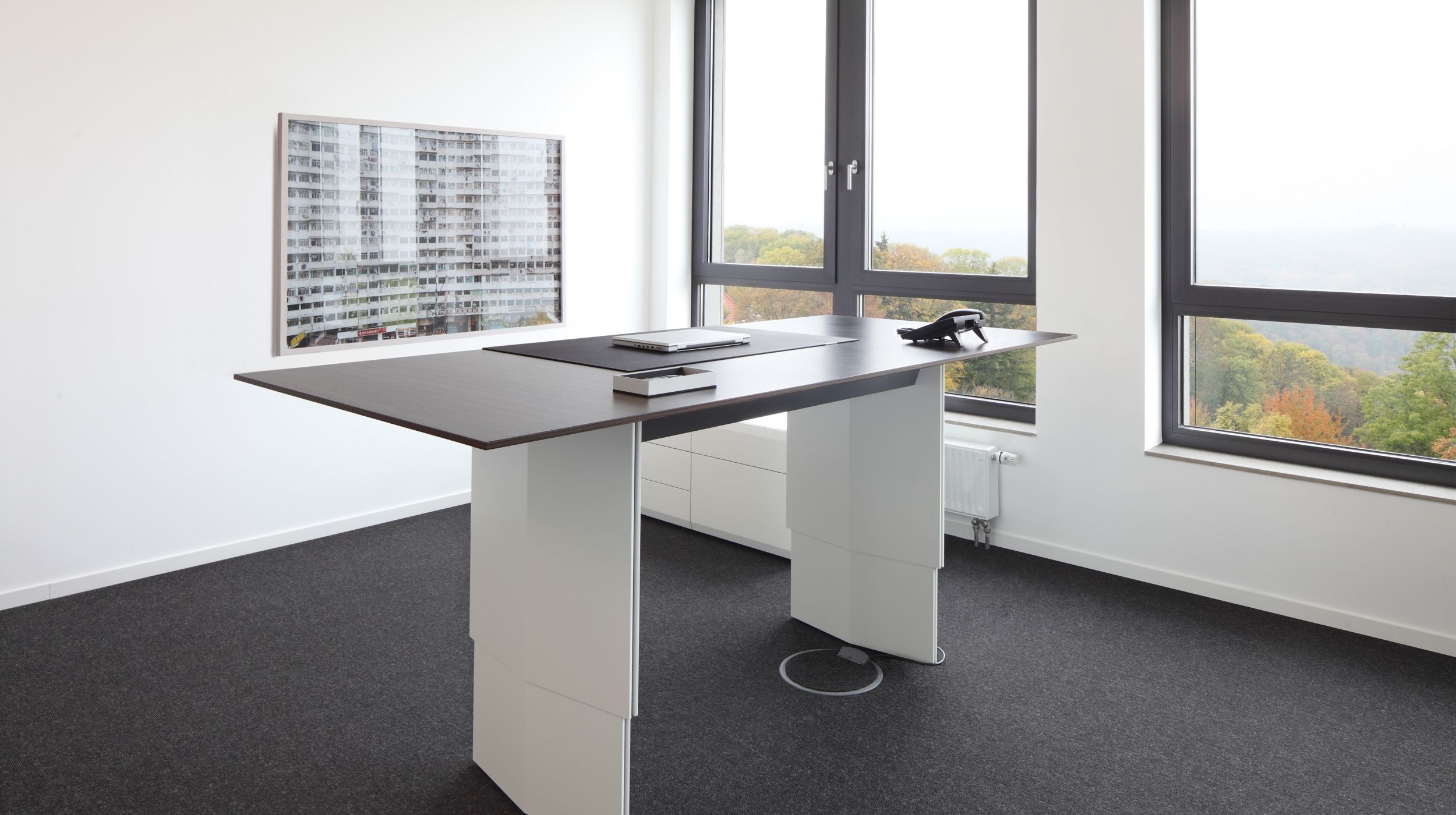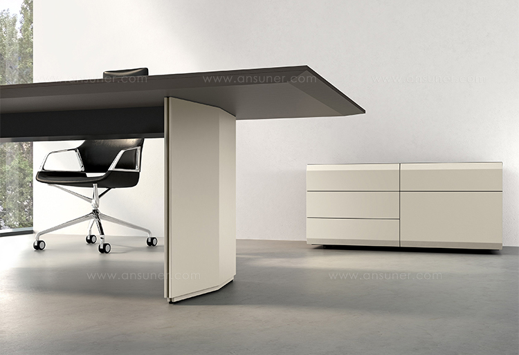 精心设计的工作表面,可调节到不同的高度,其形式在第一眼看上去就不一样了。 不显眼的功能细节连接优雅的外观和出色的做工,提供了绝对的稳定和最大的底部空间。桌面似乎漂浮在基座上, 有各种各样的尺寸,饰面和精致的贴面。电缆和驱动器隐藏在优雅的漆面漆的侧面板后面。匹配的容器和侧板是完美的补充,既增加了功能又增加了气氛。