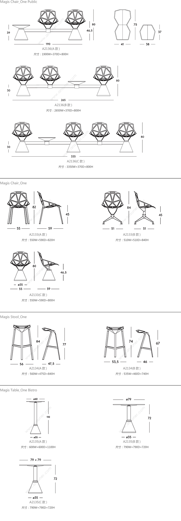 Magis 系列尺寸/示意图