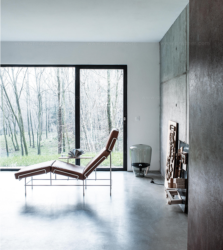 所有的产品均配有膨胀的聚氨酯泡沫垫,在织物或皮革的装潢和粉末涂层金属结构。交通躺椅提供皮革内饰或Kvadrat钢制三层面料室内装潢。每个躺椅都有一个丙烯酸石碑。