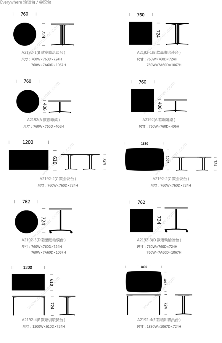 Everywhere 系列尺寸/示意图