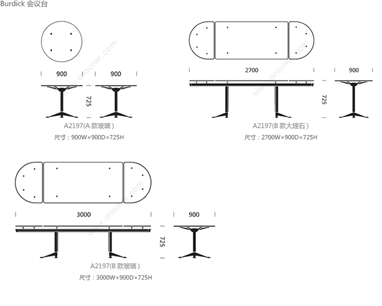独特的中央铝制横梁使这款由Bruce Burdick设计的会议桌拥有出众的外观。这款精致的会议桌成套提供,也可以选配组件定制(包括玻璃或石制的两种顶面形状),外观与众不同,功能强大,适应性极佳。
