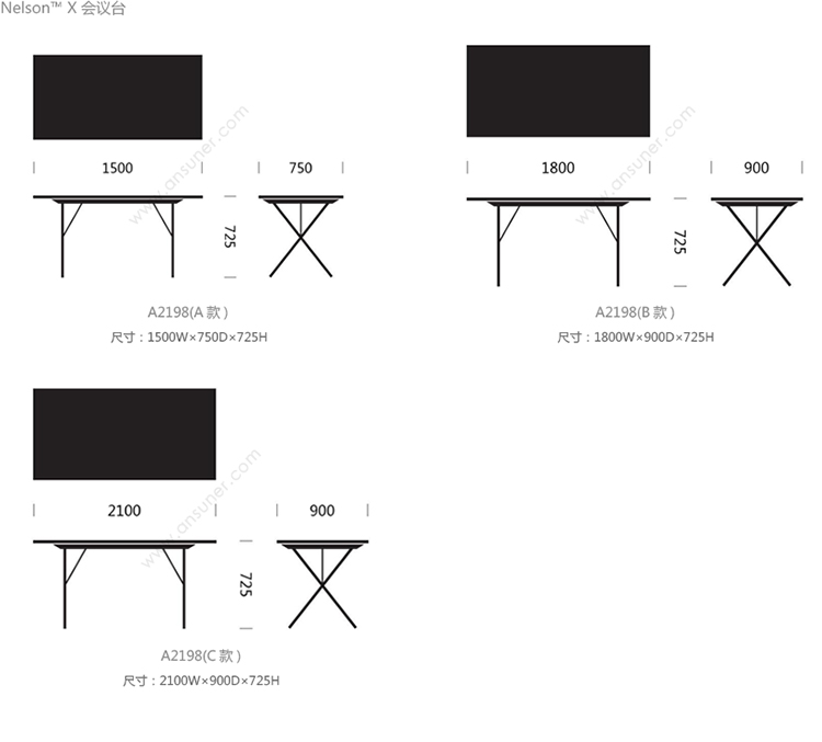 同样适用办公环境的一款餐桌设计,或者说同样适合餐厅场所的一款工作桌台,Nelson X-Leg桌子对二者并没有任何区分。两种深度和三种宽度,让您可以为自己的空间任意挑选最适合的尺寸。