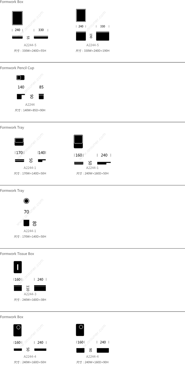 Formwork 杂物盒 系列尺寸/示意图