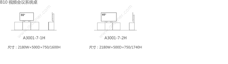 B10视频会议系统桌 系列尺寸/示意图