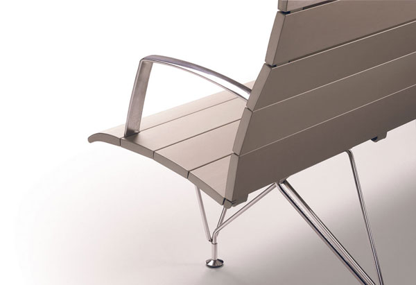 Airport可以在室内和室外使用。所使用的材料,分别是铝制座椅和钢制框架,即使暴露在户外环境下也具有耐用性和持久性。在室内版本中,垫子可以被布置并覆盖织物,“环保皮革”或皮革,并且脚可以调节高度。