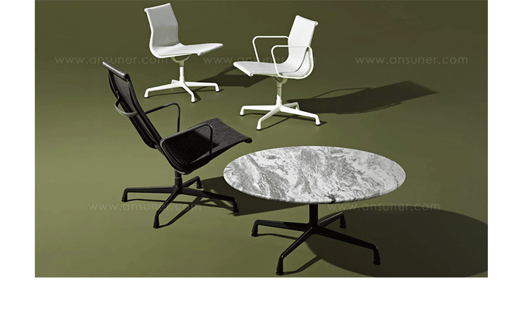 Charles与RayEames夫妇是20世纪最有影响力的设计师,卓越的设计涵盖了家具、建筑、影像与平面设计。他们从二次世界大战中美国海军的实验计画中学习经验并发展可谓是现今工业中使用模铸胶合版的先锋,这对设计界的超级夫妇档自1940年参与了由MOMA举办的有机家具设计大赛,自今已有近百件他们的作品被各大博物馆所永久典藏。 Eames® Soft Pad Side Chair(伊姆斯软包会议椅)是夫妻俩1958年设计的,是在全铝系列的基础上发展的另一系列Eames产品。舒适系列在全铝的椅架上增加了皮革制的柔软坐垫和靠背,高级铝合金制作,压模四星脚,可旋转。背垫和坐垫,采用西皮,具有透气性强,内部填充高密度定型绵,不易变形,不老化,依人体坐姿,符合人体工学,耐水及对人体无害等优势。椅子扶手选用优质电镀铝合金扶手,手感舒适,永久不生锈。转椅底盘为多功能底盘,可以保护使用者长时间坐用腿部健康,且作为高度可多定位调节。气压棒采用的气杆是正规厂家出产的外贸气杆,每一根气杆都有钢印,经过严格SGS检测的才可出厂,旋转、升降自如基本无声响,使用寿命长,可承受250kg,可升降数万次,将椅面调至与膝盖同高时,使用者坐下后双脚跟可垂直平放于地上,且大腿与地面平行,最符合人体工学理论,使用者长期久坐,也不想疲惫。办公椅脚为铝合金材质永久不生锈、承受能力强,安全更放心。椅子脚轮采用优质电镀片脚轮,耐用而美观,可以随意变换位置,贴心更方便,具有防震及防松脱,让椅子的安全性能更加可靠。