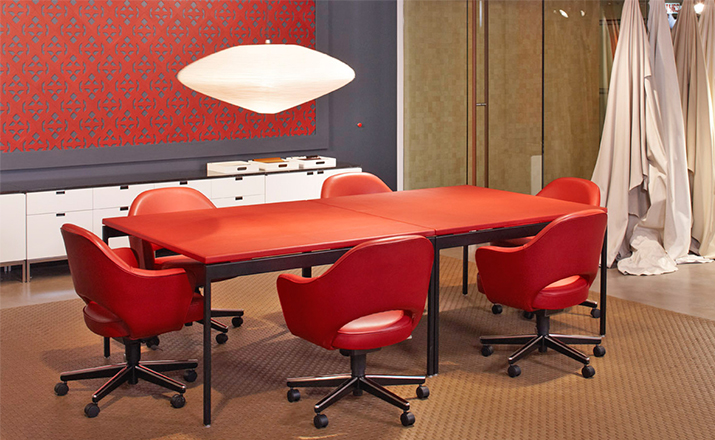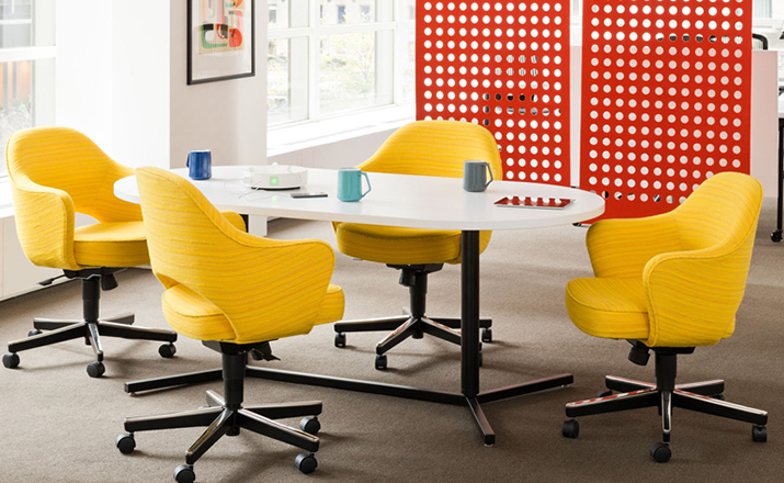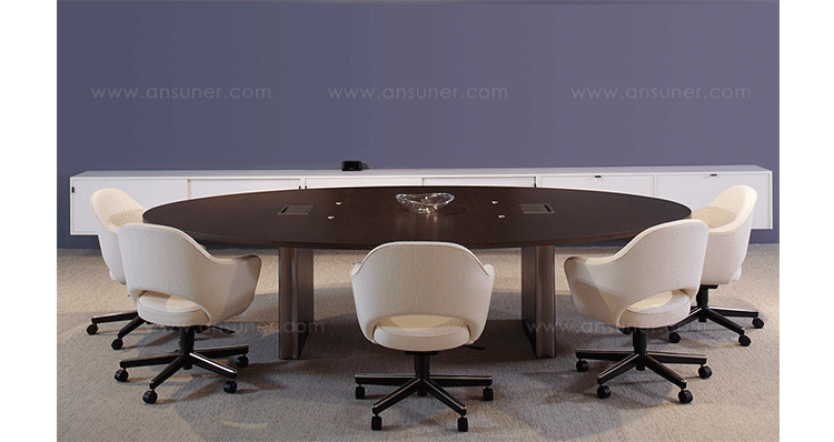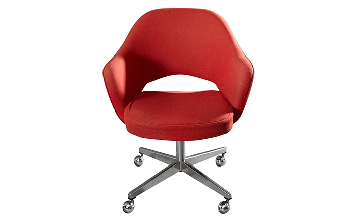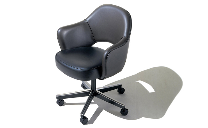 In his groundbreaking collection of 1957,Eero Saarinen transformed executive seating into a fluid,sculptural form.Recognizing the importance of user comfort,Saarinen became the first to construct a chair shell from fiberglass,a pliable material that flexes the In response to body weight.The chair is available with and without very different,and the features metal or wood legs,or a swivel base.The armless chair with a plastic back,ideal for cafe applicatons, is a recent reintroduction.