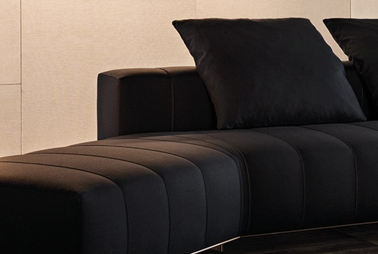 弗里曼“裁缝”项目的理念和原创性在其衍生系列弗里曼“休息室”中也有所体现。弗里曼“休息室”沙发纵深度有所降低,不仅更易搭配较小的居住空间,还可以用在接待场所,如等候室、前台区域、行政办公室。单组沙发的特点在于采用规则图形纹样的优雅缝线设计,可以自由随性地组合沙发,打造灵动的造型。“Wing”扶手拥有轻盈的线条,这要得益于采用聚氨酯为基材的泡沫金属框架。精致的包覆材料展现出公司运用复杂面料进行剪裁加工的实力。皮革和织物面料的各个部件通过浅铜色人造皮革束带和双缝线工艺连接在一起,打造出独特的纵深效果。