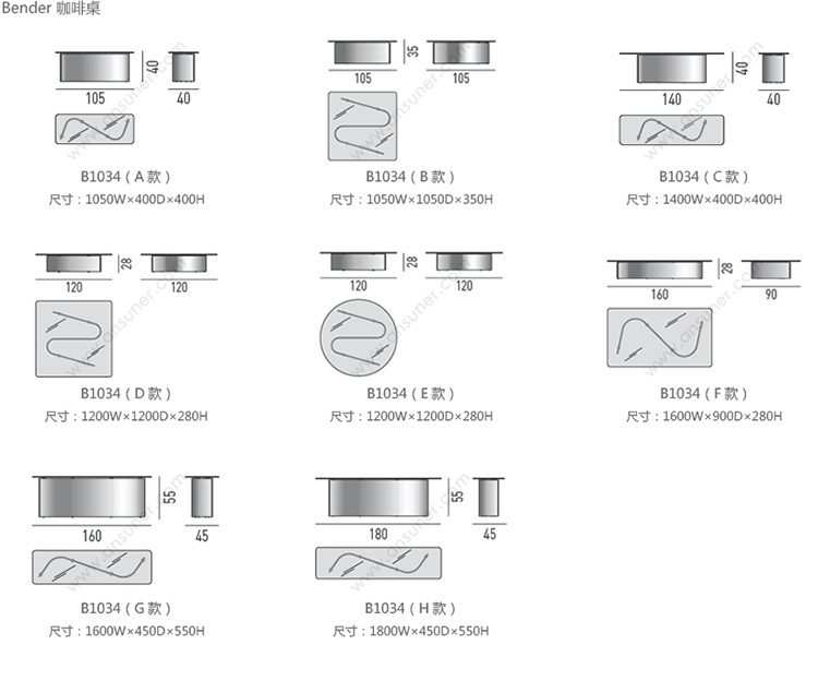 Bender 咖啡桌 系列尺寸/示意图