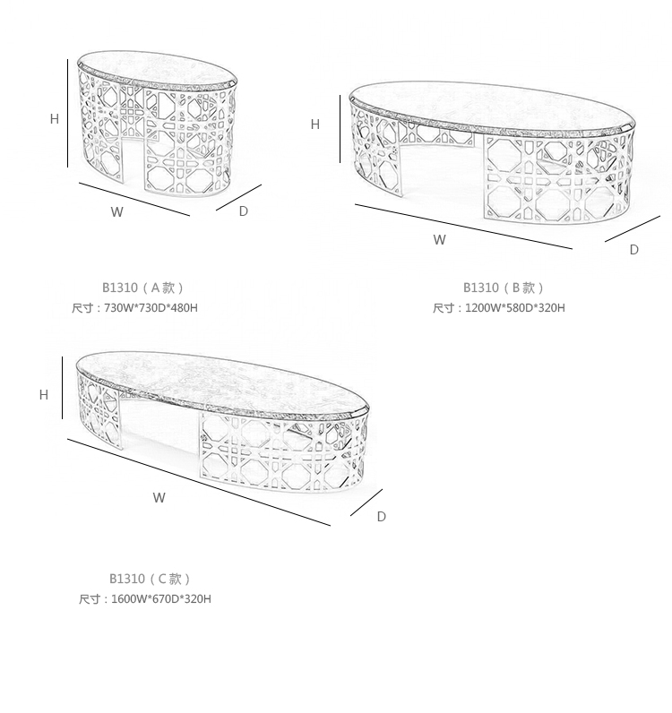 Este 茶几 系列尺寸/示意图