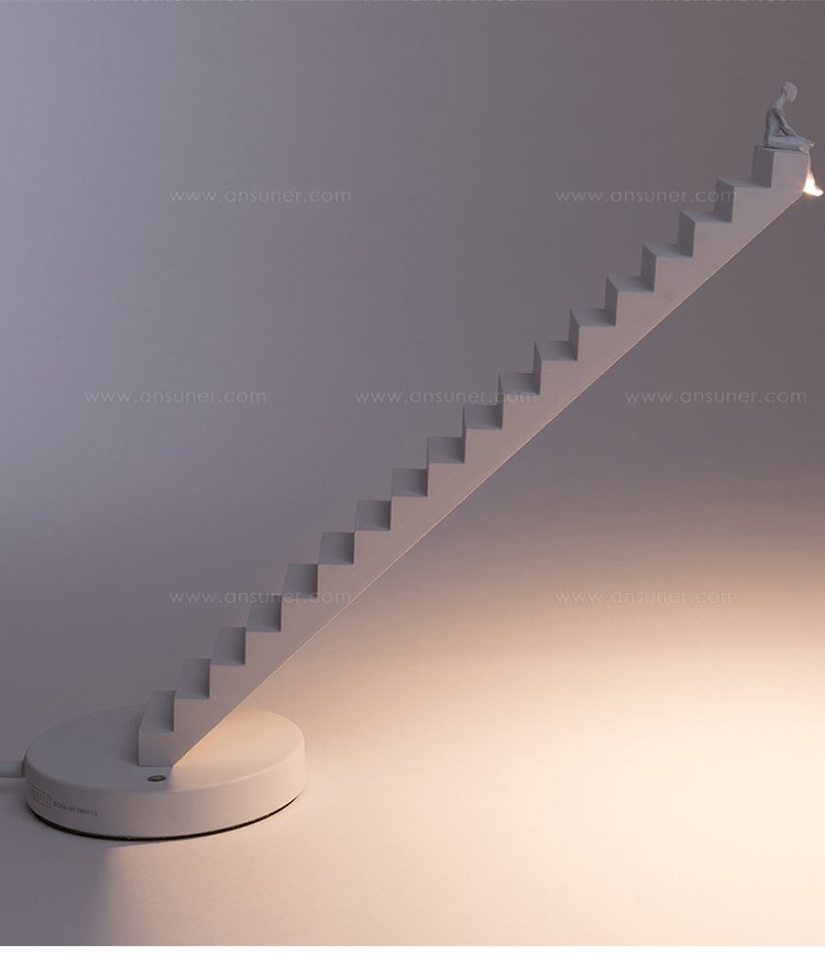 Verso台灯,它的设计目的是使一个普通的技术对象戏剧化,并在灯关闭时提供一种功能,这就是雕塑。“从A点到B点,空间中的日常活动被最著名的建筑建筑工具——楼梯所吸引。就像在建筑中一样,Verso的光线也发生了同样的事情,被送到合适的高度来照亮平原。如果点B不是唯一的目的地呢?