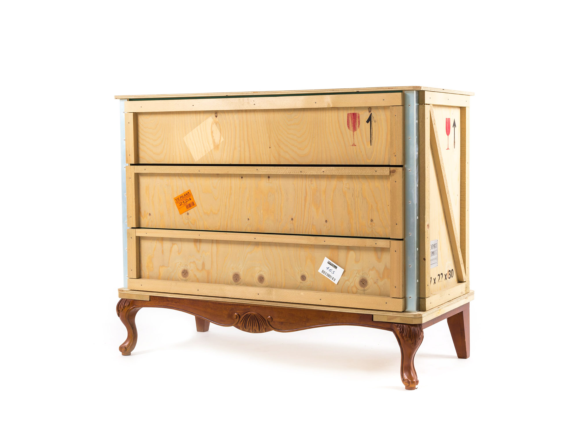 这款现代床头柜由Marcantonio Raimondi Malerba为Seletti设计,它融合了两种不同风格的设计。一个标有各种标签和标志的包装盒配上华丽的路易十四腿。明亮的绿色内部有一个架子和两个存储空间。手工制作的实木,这出口科莫床头柜是令人印象深刻的耐用性,因为它是在其独特的设计。它可以单独使用,在卧室或与来自ExportComo系列的其他家具一起创建一个焦点。意大利制造。