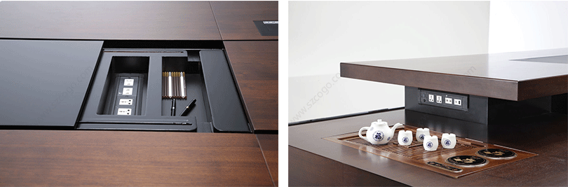 隐藏式插座和放置小物品小槽,使桌面更整洁