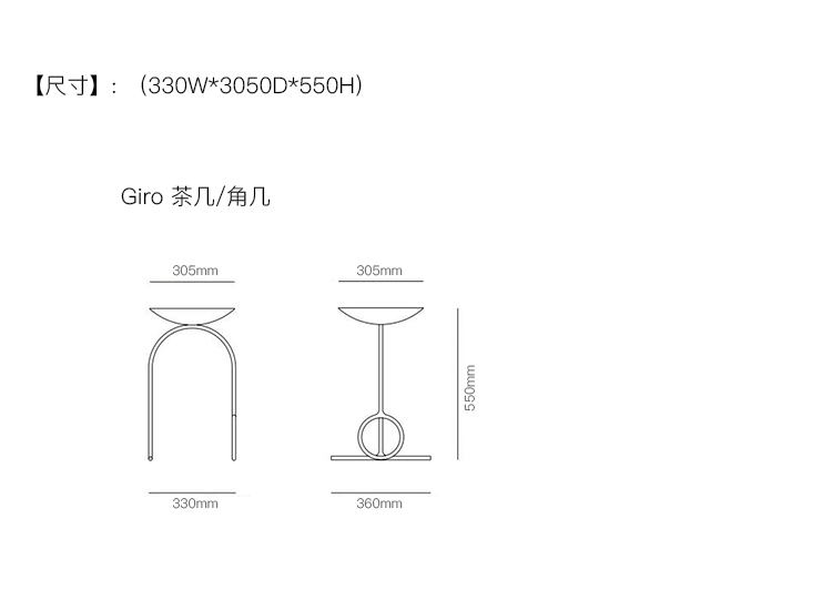 Giro 茶几/角几 系列尺寸/示意图