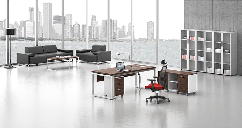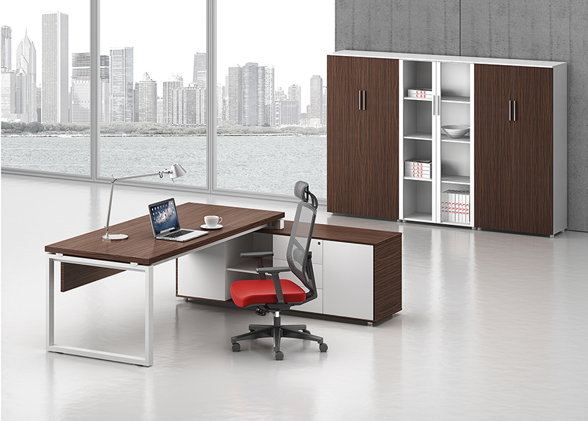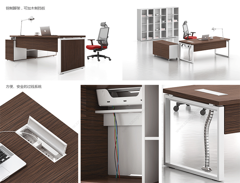 凯撒系列,源自德国的设计风格,糅合木的柔美与刚强的特质,深褐色的睿智理性与白色的纯净空白带来强烈的视觉对比。桌脚部位采用白漆方框金属支撑架,或是装饰或是必须,恰到好处地表现凯撒的艺术姿态。如此,简练高雅的设计,体现出东方华奥现代办公打造的高品位、个性化的办公方式。"