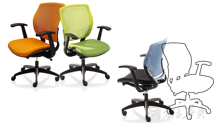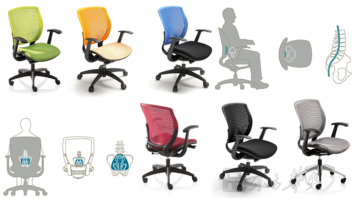 ※   高弹力材质的塑胶背板,附有人体工学的腰靠设计,可随人体的活动巧妙变形,并同时提供均衡的身体支撑,保持嵴椎的曲线。尤其对下腰部位的支撑,更健康的解决了久坐的疲劳和不适。