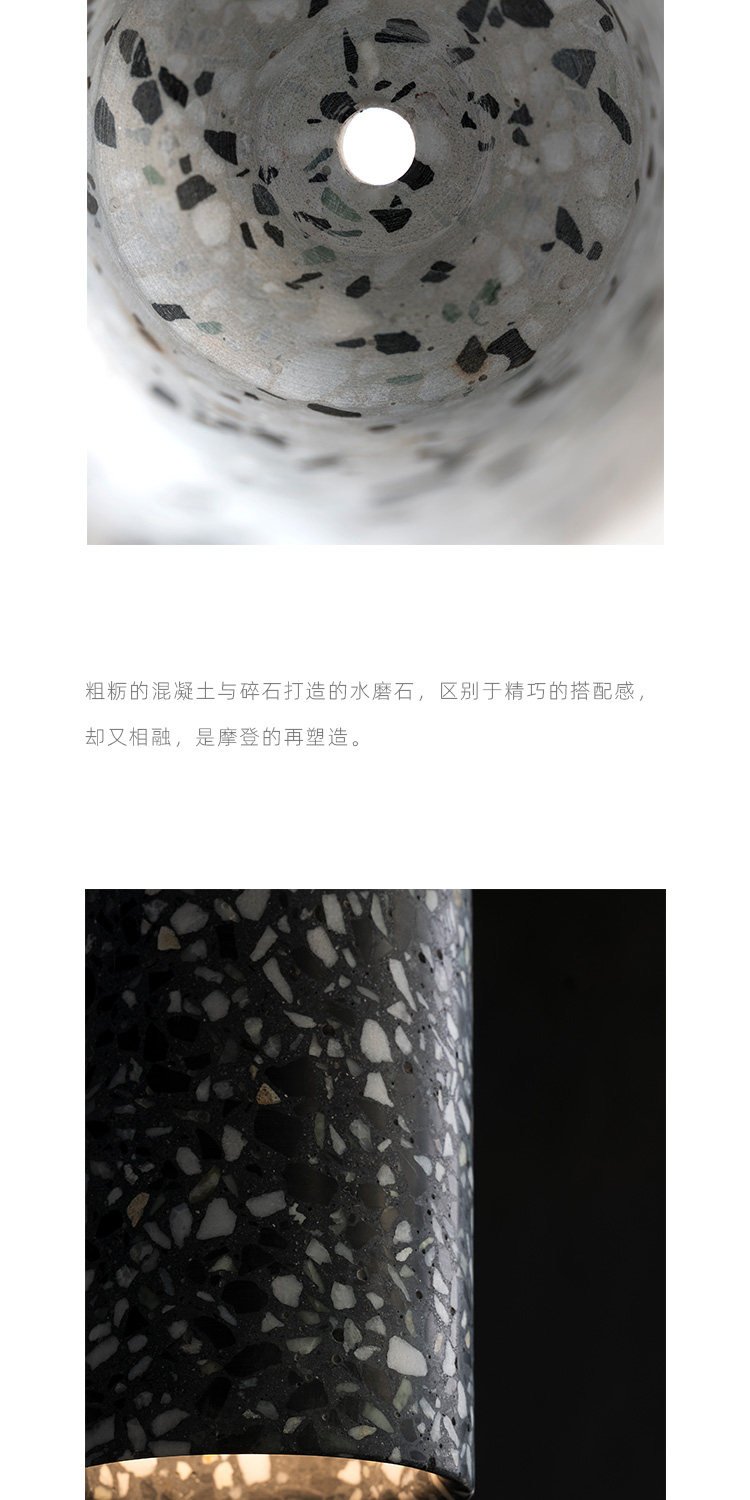 以材质再生为基本手段的水磨石系列,将陶瓷废渣再生成简洁形态的日常性家具,以衍生产业的形式回归到大众层面的使用中。 中国佛山,这片拥有全球最大最成熟的陶瓷产业链和产业集群的建筑陶瓷工厂的土地,承载着每年400万吨陶瓷废弃物带来的环境污染。 以材质再生融入日常,不仅是激发商业价值的大胆尝试,是环保理念的日常化实践,更是对自我尊严的基本坚守和追求,我们探寻陶瓷跨越地域局限的一种当代突破!