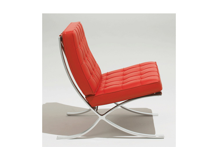 巴塞罗那椅由设计师密斯在1929年巴塞罗那世界博览会上,为了欢迎西班牙国王和王后而设计,同著名的德国馆相协调。这件体量超大的椅子也明确显示出高贵而庄重的身份。当年的世博会德国馆是密斯的代表作,但由于建筑的设计意念独特,竟没有合适的家具与其搭衬,所以他不得不专门设计了巴塞罗那椅来迎接国王和王后
