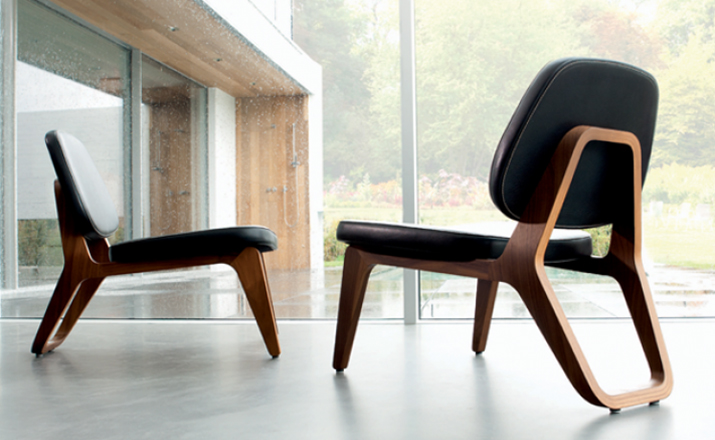 Combining both of Wildspirit’s preferred materials, Moon Lounger is a low lounge chair“with a blink to the avant-garde design of Charles Eames.” With its bright leather upholstery and its dark wood frame, Moon Lounger is like Saturn in a deep dark galactic universe.The curve of the legs gives the chair various profiles depending on one’s point of view.Always seductive,the base“provides a soft feminine touch”with its graceful parabolic arcs.All of Moon Lounger’s shapes recall space:the ovals and ellipticals of the frame and cushions put me in mind of orbit trajectories and spinning planets.