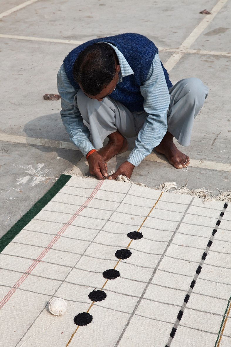 Rabari系列产品由100%新西兰羊毛制成,由印度的Sumak技术手工制作而成。
