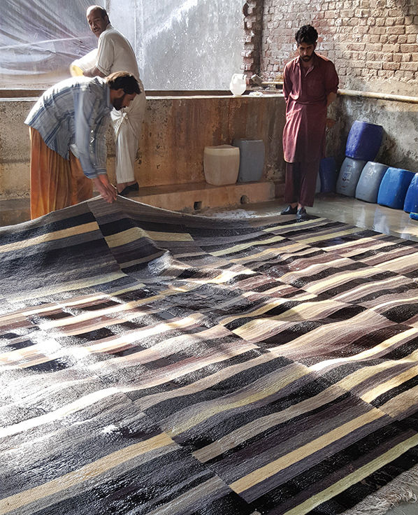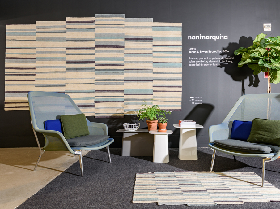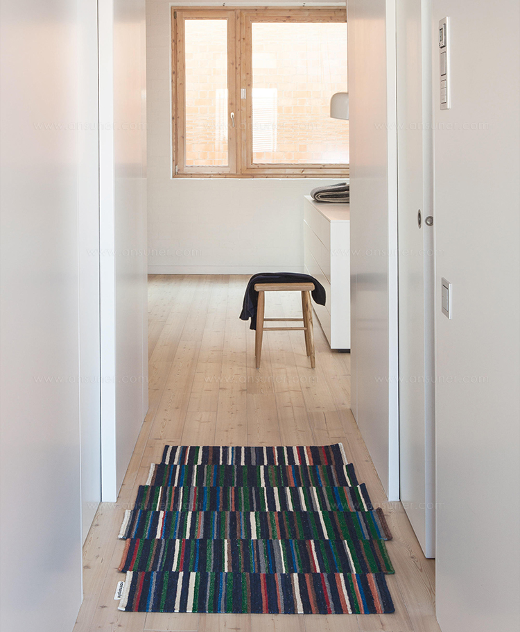 地毯通常被设计成一个图案分布的表面。然而,在格的情况下,模式被定义为一种生成地毯本身形式的建设性系统。彩色条纹的系统,在这种模式,形式和颜色以一种亲密的方式联系在一起,创造了一个不同的范围。——布洛埃克兄弟解释道。