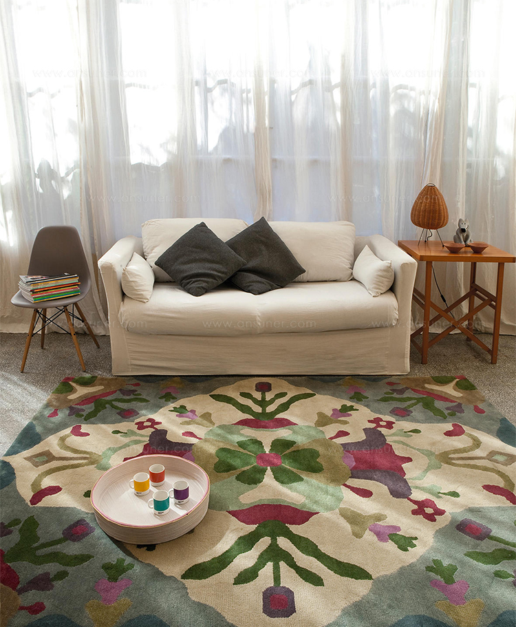 维多利亚地毯由时装设计师Sybilla设计,用手工打结技术制作而成,它呈现出一种对称的花卉幻想,结合仔细考虑的色彩组合,达到了一个令人着迷的结果,高度敏感。
