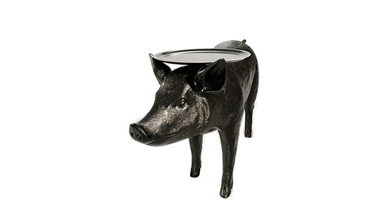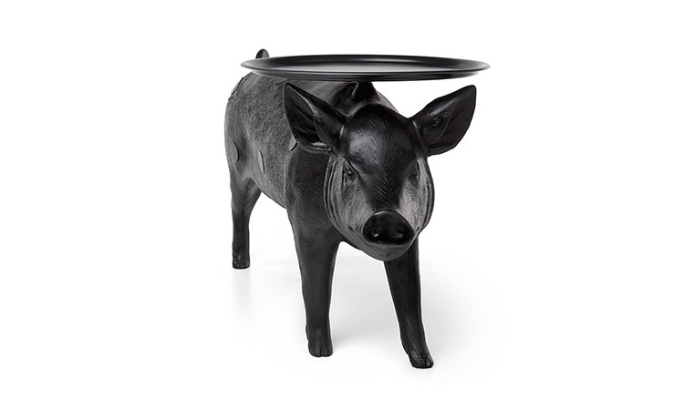你想不想用一直原物大小的小猪台给你的客人提供饮品?猪台是Front设计的三套动物家具系列中的一个,他们设计的其他两款动物系列分别是马灯和兔子灯。Front设计团队成立于2003年,由四个设计师组成。所有成员都参与设计过程中从最初的讨论和想法阶段到最终产品生产。他们的作品建立在共同的讨论、探索和调查相关的不同主题的基础上。最终的产品常常通过在产品领域及材料组成间向参观者传达了一个关于他们设计经历的故事。猪台的托盘并不以对称的形式附着在猪上。托盘设置的角度可以调整的,且如果地面不平整还可以进行调整。猪台有着猪标志性、可爱的笑脸,颜色只有黑色可选。