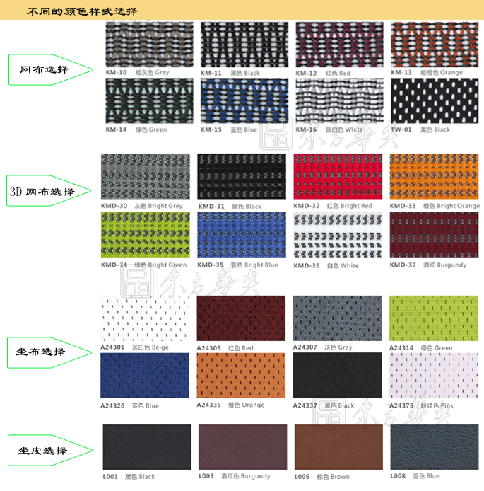 头枕、背垫、腰枕及座垫均为高级黄牛面皮;黑色塑胶框架,TPU扶手垫;头枕插条、头枕横把手、背支撑架、扶手垫支撑座、扶手升降按钮、扶手内管、底盘支撑架均为铝合金精抛光;100MM气压棒,340MM铝合金精抛光椅脚,65MM PU滑轮;