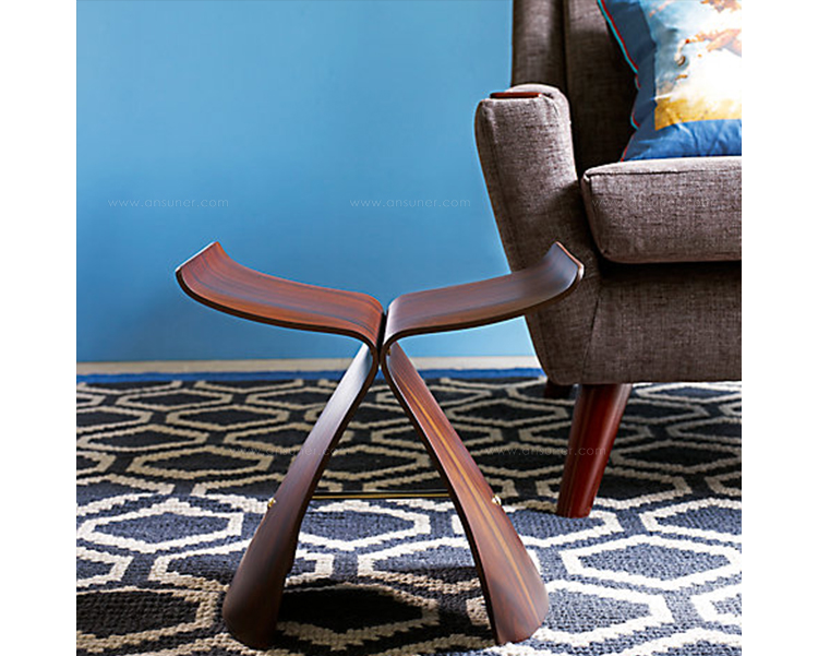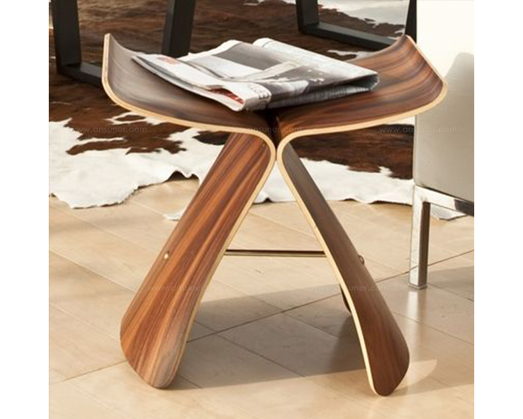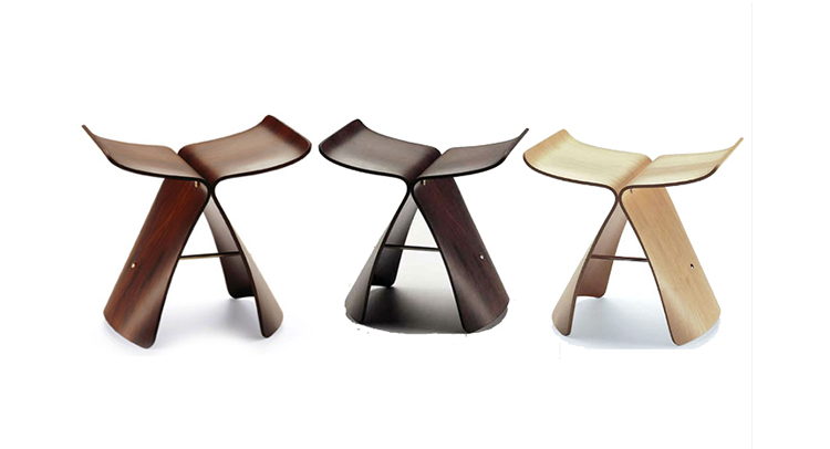 Butterfly Stool(蝴蝶凳)于1954 年由日本著名工艺设计师Sori Yanagi(柳宗理)所设计发表,蝴蝶凳的诞生以战后日本的经济重建为背景,它的特点就在于其构造的独具匠心:开头完全相同的两个部分通过一个轴心对称地连接在一起,连接处在座位下用螺丝和铜棒固定。是功能主义与传统手工艺的结合。这种造型很像是蝴蝶的一对翅膀,因而就取名叫蝴蝶。可放在客厅,易可放门厅玄关处做为换鞋凳,方便移动,功能强大,是集时尚、美感、实用等于一体的经典家居产品。1957年蝴蝶凳在米兰设计大赛时获得金奖。
