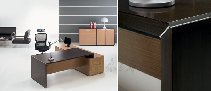 ※ 通过不断研讨及风格重塑,简系列经理台具有鲜明的个性风格,同时又注重功能,追求外观和功用内在统一,从而与传统办公台区别开来,逐渐演变成注重人性和谐的流行款式。 ※ 矩形的主台,从平面到造型,简洁明了,逻辑性强,表现出理性的特点,预设多功能线管理系统。 ※ Y型铝合金台面台脚连接件,巧妙处理木纹对接工艺,内藏式钢架,保证连接强度。