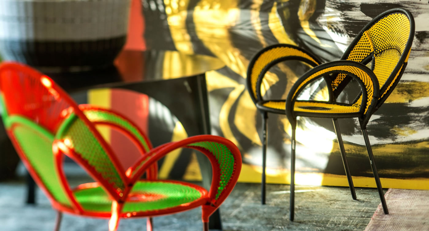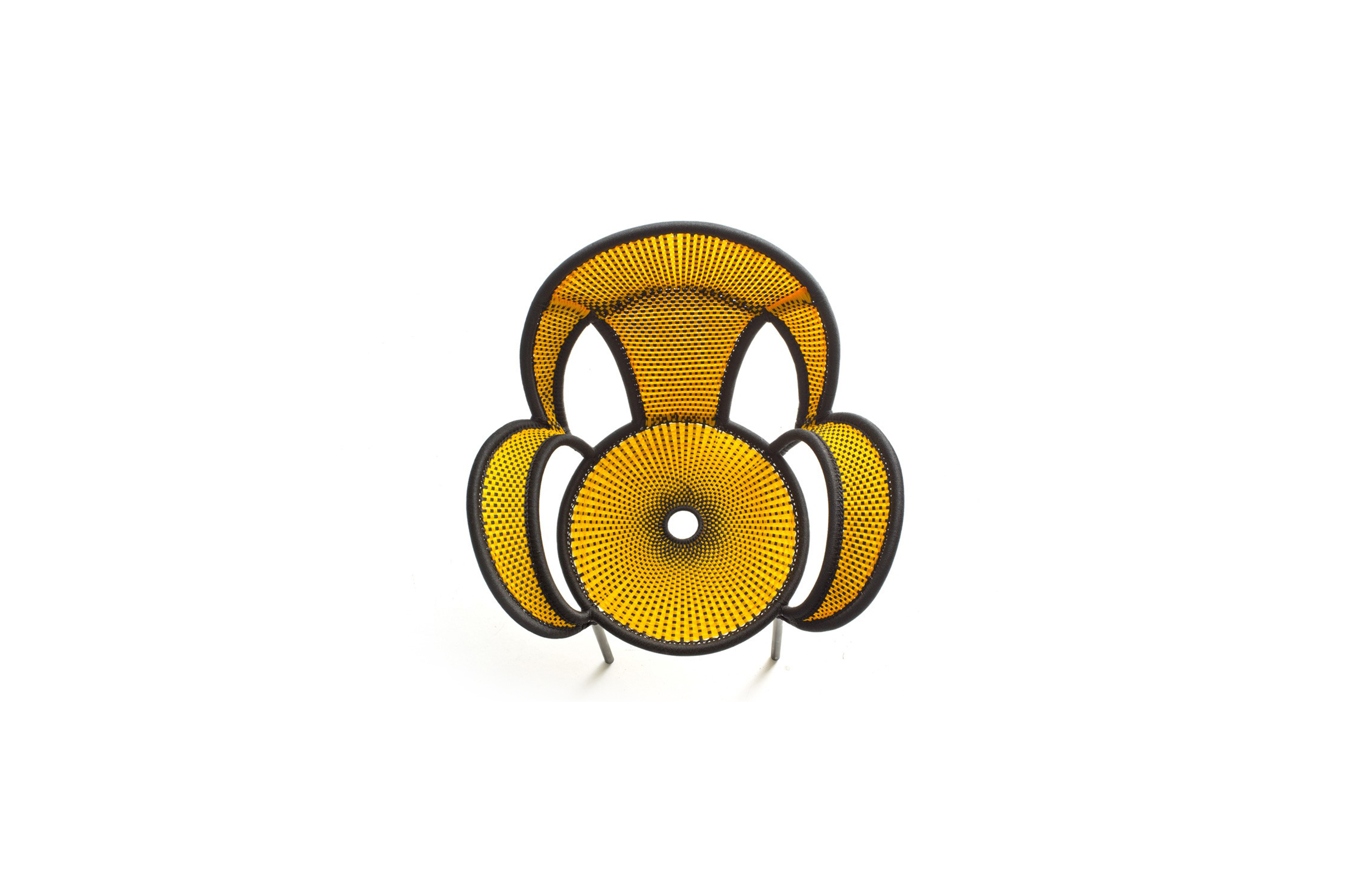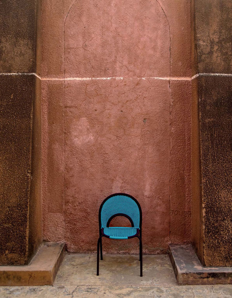 这个椅子的形状,尤其是扶手的形状设计,灵感来源于雄性鸵鸟在求偶时所跳的舞蹈,banjooli的扶手如同雄性鸵鸟伸出了翅膀,向雌性展示它们的美丽。Banjooli是M 'Afrique的一部分,由设计师设计的一系列椅子,由非洲手工编织者使用渔网的纱线生产。纯手工编织,不完美,但真实。