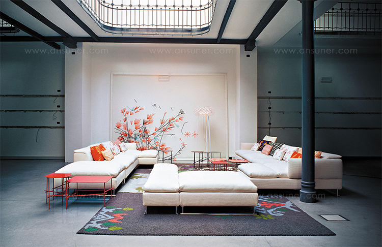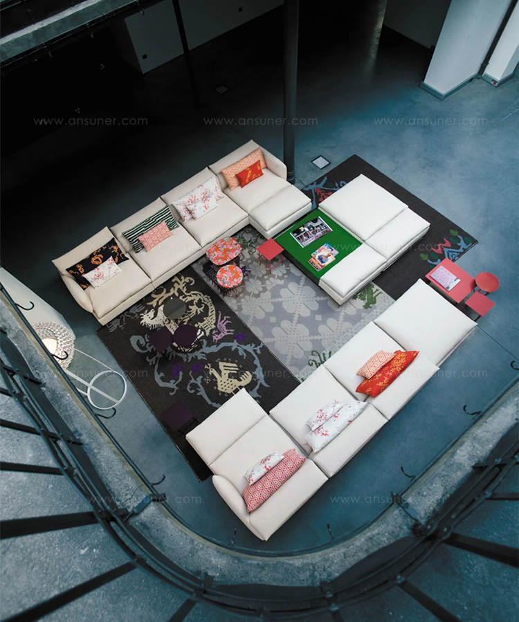 精致而舒适,低调奢华,略带东方风情。在标准位置时简单、最小;当靠背有倾斜的机制时,超级舒适。彩钢或黑色的彩管腿让人联想到用来演奏米卡多(或称“上海”意大利语)的彩色木棒。舒适是一种内在的特性,它是通过在干净的、中性的色调中舒适地垫在座椅靠垫上实现的,这种色调与在梅花、翠绿、红辣椒和漆红色中所提供的洒垫和涂漆的边桌所提供的色彩形成了完美的对比。